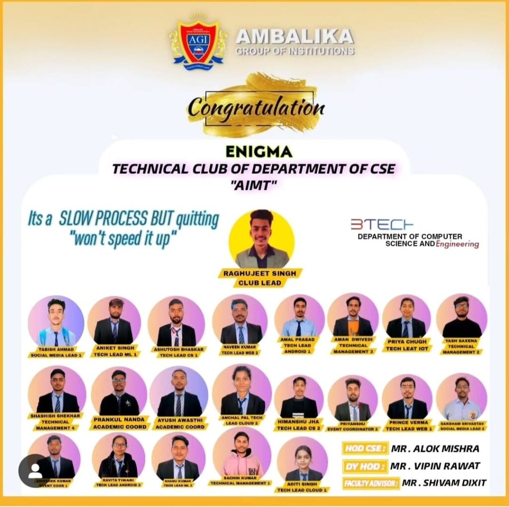 Ambalika Institute of Management and Technology offers an undergraduate program in Computer Science & Engineering (CS&E), specifically, B. Tech Computer Science and Engineering. It is the best Computer Science course in Lucknow affiliated to AKTU (Dr. A.P.J Abdul Kalam Technical University, Lucknow) and follows the eight semester structure prescribed by it.The department was established in 2008 with an initial intake of 60 students and the current intake is 180 students. Our B.Tech (CS&E) program is accredited by National Board of Accreditation (NBA).
